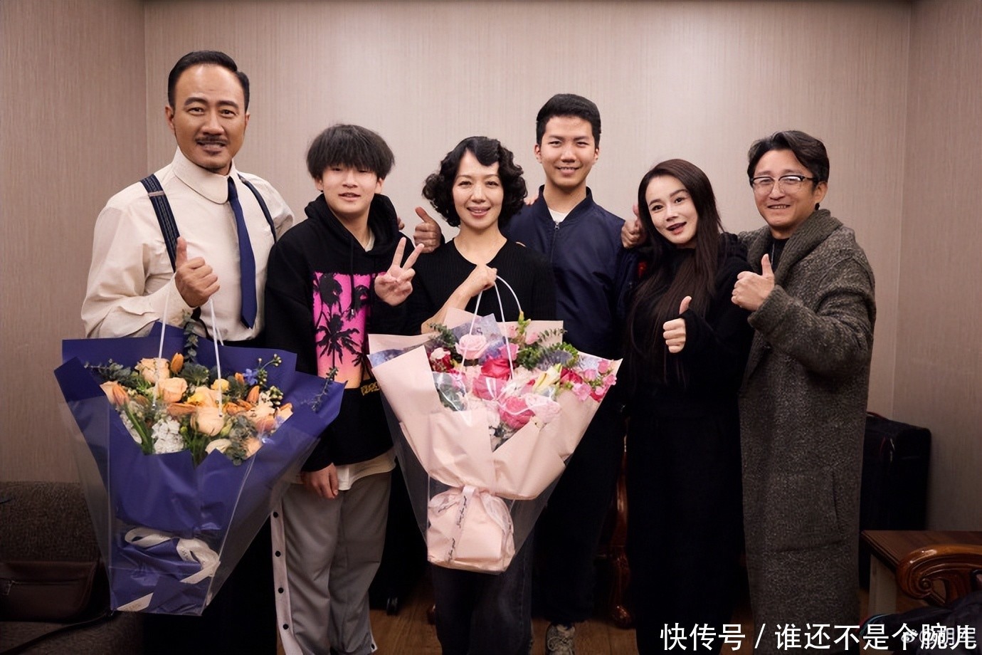 画面一转,胡军就晒出和邹市明一家人的温馨合照啦。合照中,胡军站在最边上,他仍然还是剧中造型,十分抢镜。胡军手里提着一大束花灿笑入镜,脸上的喜悦藏都藏不住。卢芳同样是剧里的妆造,她也提着一大束鲜花满脸堆笑,这些花束大概率是邹市明夫妇送的。